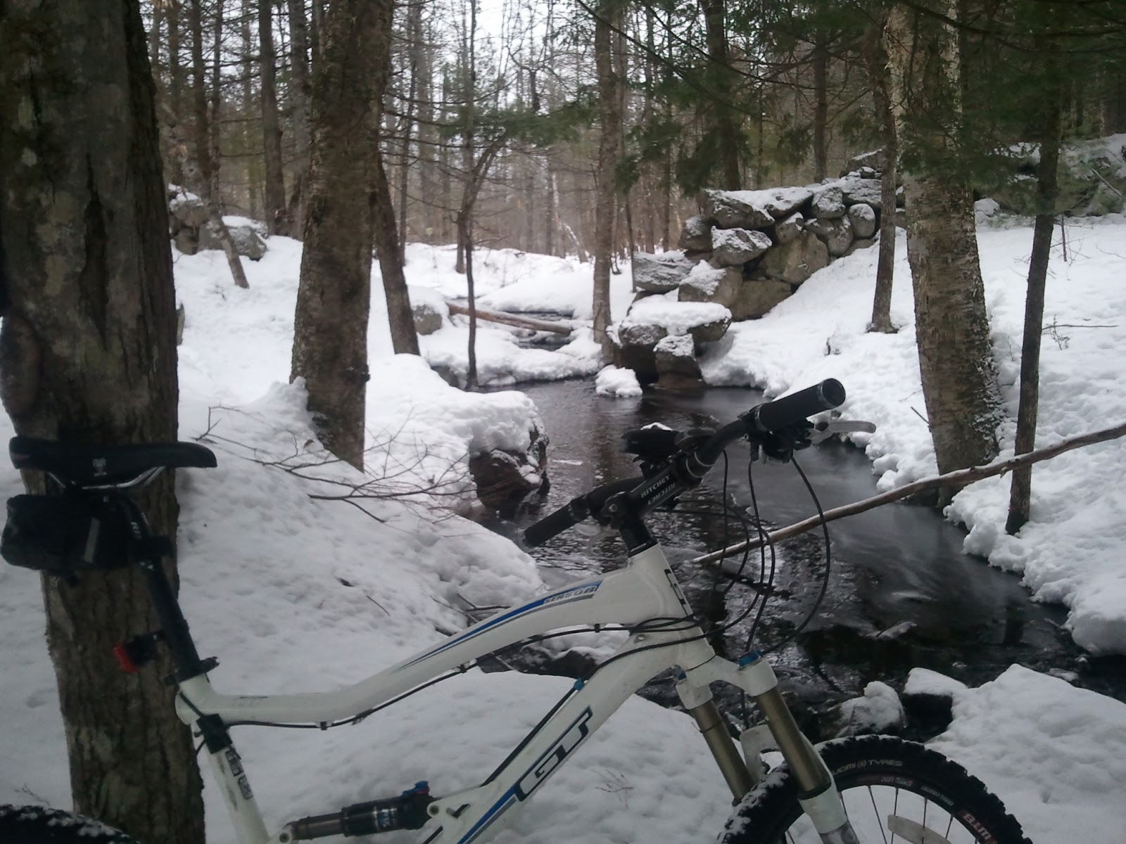 Which bike to ride? That is often the question which also implies which shoes to wear. I think I changed my shoes 4 times this morning trying to make that decision. After going outside to check the snow conditions I came back and put on my mountain bike shoes and set off. After about 1/2 mile of road and 1/4 mile of trial later I turned around, went home and changed shoes one last time and tool the fatbike out. It was the right choice for today.